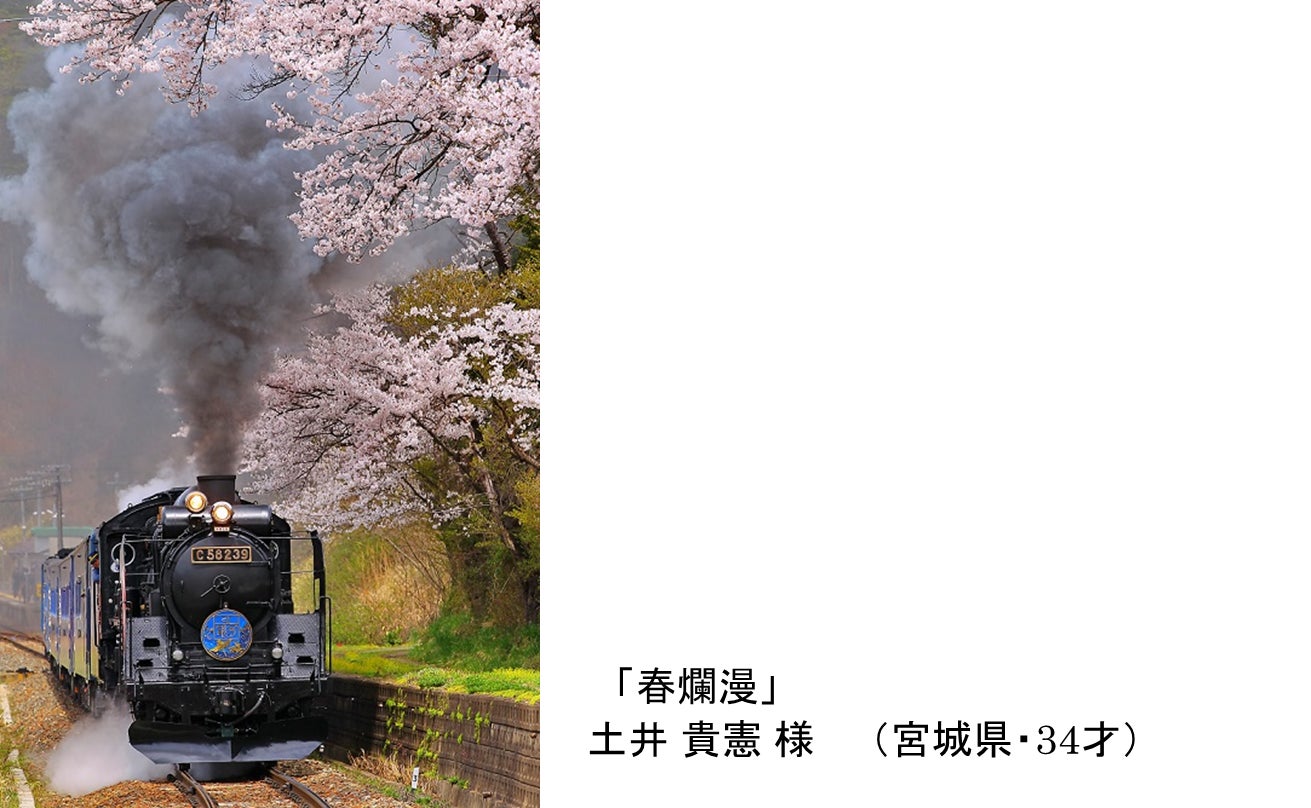 この場に出会えたという運の良さもあると思いますが、写真も人生と同じで「運」も大切な要素なのです。運を拾えるか拾えないか、運に突き放されるか味方にできるか。それが分かれ道になりますが、この方は見事に運を掴まえて自分だけの作品に仕上げたところが素晴らしいと思いました。実力があるから幸運を活かせたということでしょうね。車両の色も鮮やかで、思わず「この列車に乗ってみたいなあ」と、そんな楽しい気持ちにさせてくれる写真です。